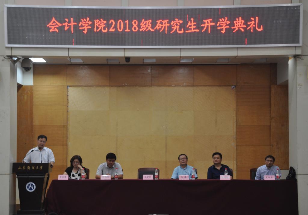 9月13日下午,免费黄色网站 2018级研究生开学典礼在燕山校区三号楼报告厅隆重举行。免费黄色网站 党委书记张涛,院长王爱国,MPACC中心主任、副院长朱德胜,党委副书记崔东峰,副院长孙文刚,教师代表武恒光副教授,教学秘书刘明辉,辅导员郑大伟出席典礼。参加开学典礼的还有免费黄色网站 2018级全体研究生以及优秀学子代表。典礼由党委副书记崔东峰主持。