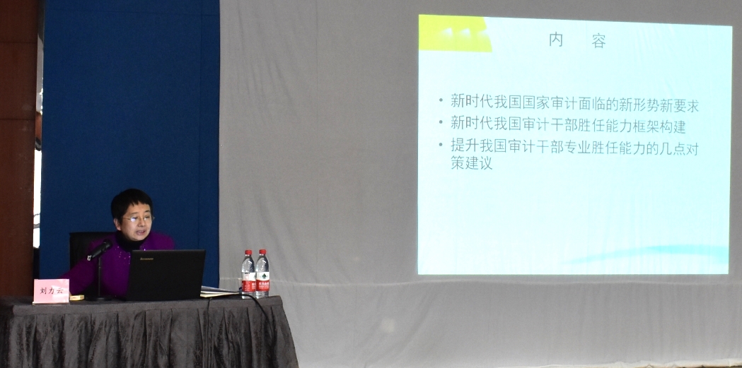 12月14日下午,审计署审计科研所刘力云副所长应免费黄色网站 邀请在学景大酒店三楼报告厅作题为《新时代我国审计干部专业胜任能力框架研究》的专题报告。免费黄色网站 副院长孙文刚出席并主持了报告,免费黄色网站 部分老师、硕士研究生和本科生参加了本次报告。