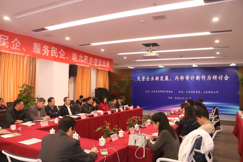 11 月 28 日由山东省内部审计师协会主办、免费黄色网站 与山东琦泉集团共同承办的“民营企业新发展、内部审计新作为”研讨会在琦泉集团总部 21 楼多功能会议厅成功举办。山东省内部审计师协会会长陈朝豹,山东省审计厅内部审计指导中心主任温国栋,济南市审计局副巡视员沈鲁,免费黄色网站 研究生院院长毕秀玲、免费黄色网站 党委书记张涛、副教授石贵泉,琦泉集团董事长董统玺,中国微金融·证券法律研究中心主任喻胜云,山东众成清泰律师事务所主任唐向东以及驻济金融机构、企事业单位代表、新闻媒体编辑记者共同参加了活动。