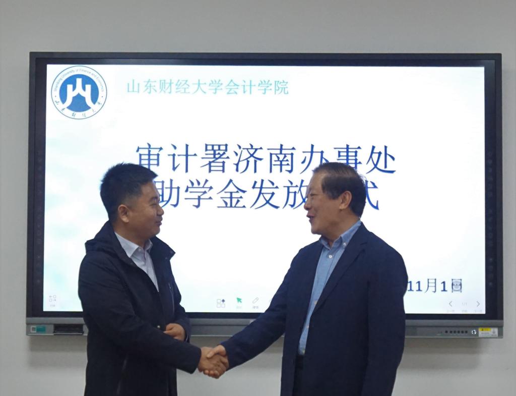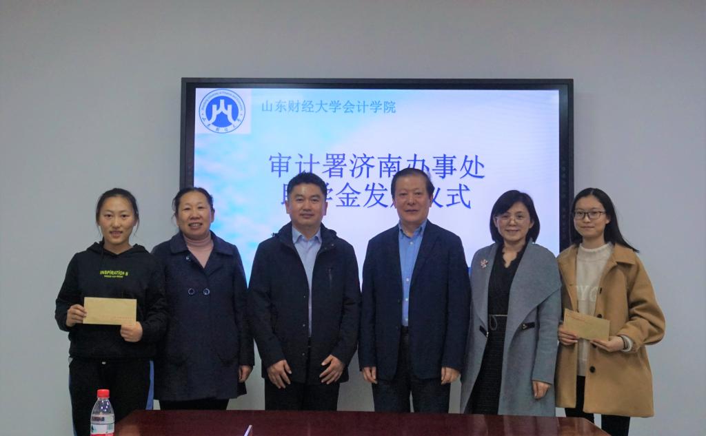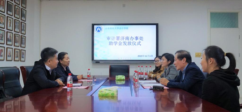11月1日下午14时,审计署驻济助学金发放仪式在免费黄色网站 燕山校区逸夫楼Y309会议室举行。审计署济南特派办机关党委人事教育处处长李军,审计署济南办妇委会主任、志愿服务队队长张洪萍,免费黄色网站 党委书记张涛、党委副书记付亚与获助学生一同参加活动。