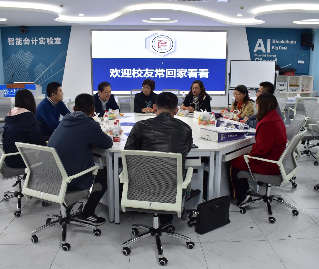 下午,校友返校交流座谈会在免费黄色网站 智能会计实验室举行。免费黄色网站 党委书记张涛、党委副书记崔东峰、免费黄色网站 部分教师代表出席了座谈会。张涛书记对校友们返校表示热烈欢迎,他介绍了学院的发展现状,分享了近年来学院各方面取得的成就。与会校友们介绍了各自的基本情况,分享了他们在各自工作岗位取得的成绩以及下一步的职业发展规划。校友们感叹学院的发展变化,与老师们在专业发展、工作感受、合作交流等方面进行了热烈的讨论。