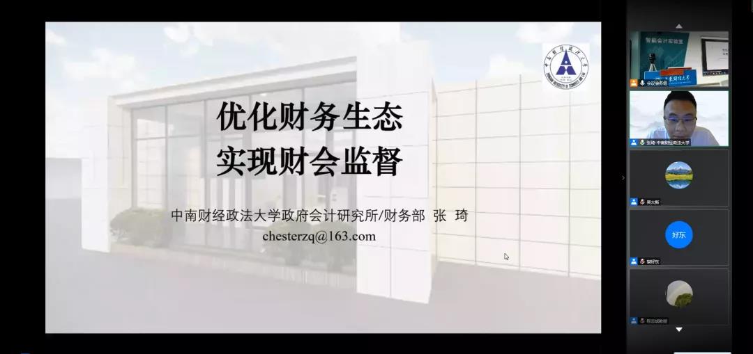 张琦教授以《优化财务生态,实现财会监督》分享了他的研究和实践成果,详细介绍了他对财会监督的内涵与外延、财会监督与其他监督的边界等问题的理解、提出了财会监督对传统财务(会计)角色(逻辑)的重构模式,最后以生态和治理的逻辑关系,分享了他在中南财经政法大学的实践经验。