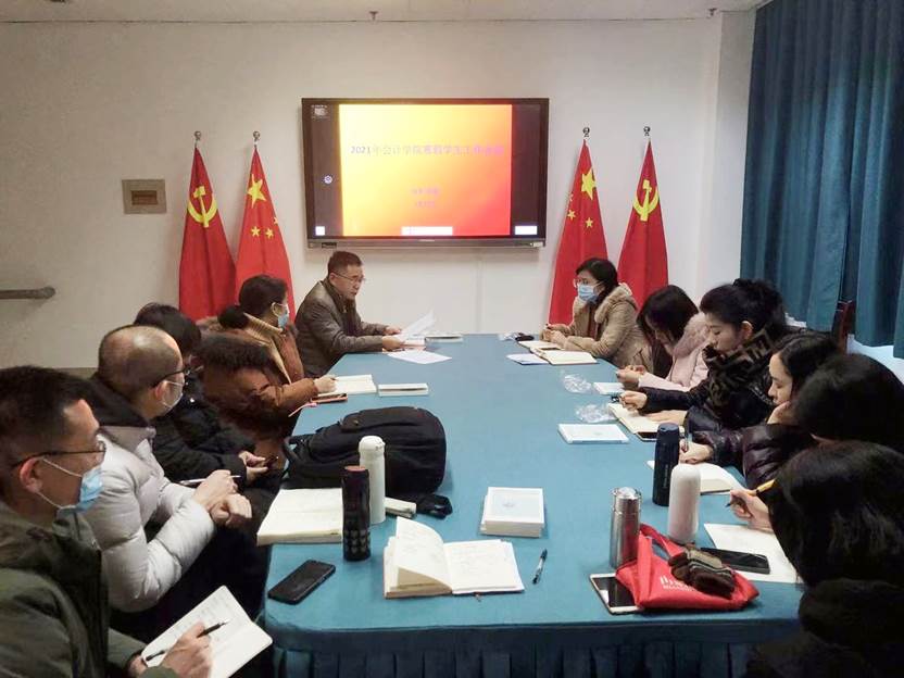 为落实好学校寒假期间学生工作各项要求,免费黄色网站 1月19号在逸夫楼416召开了寒假学生工作会议。免费黄色网站 党委书记邵文涛、党委副书记付亚和全体辅导员老师参加。