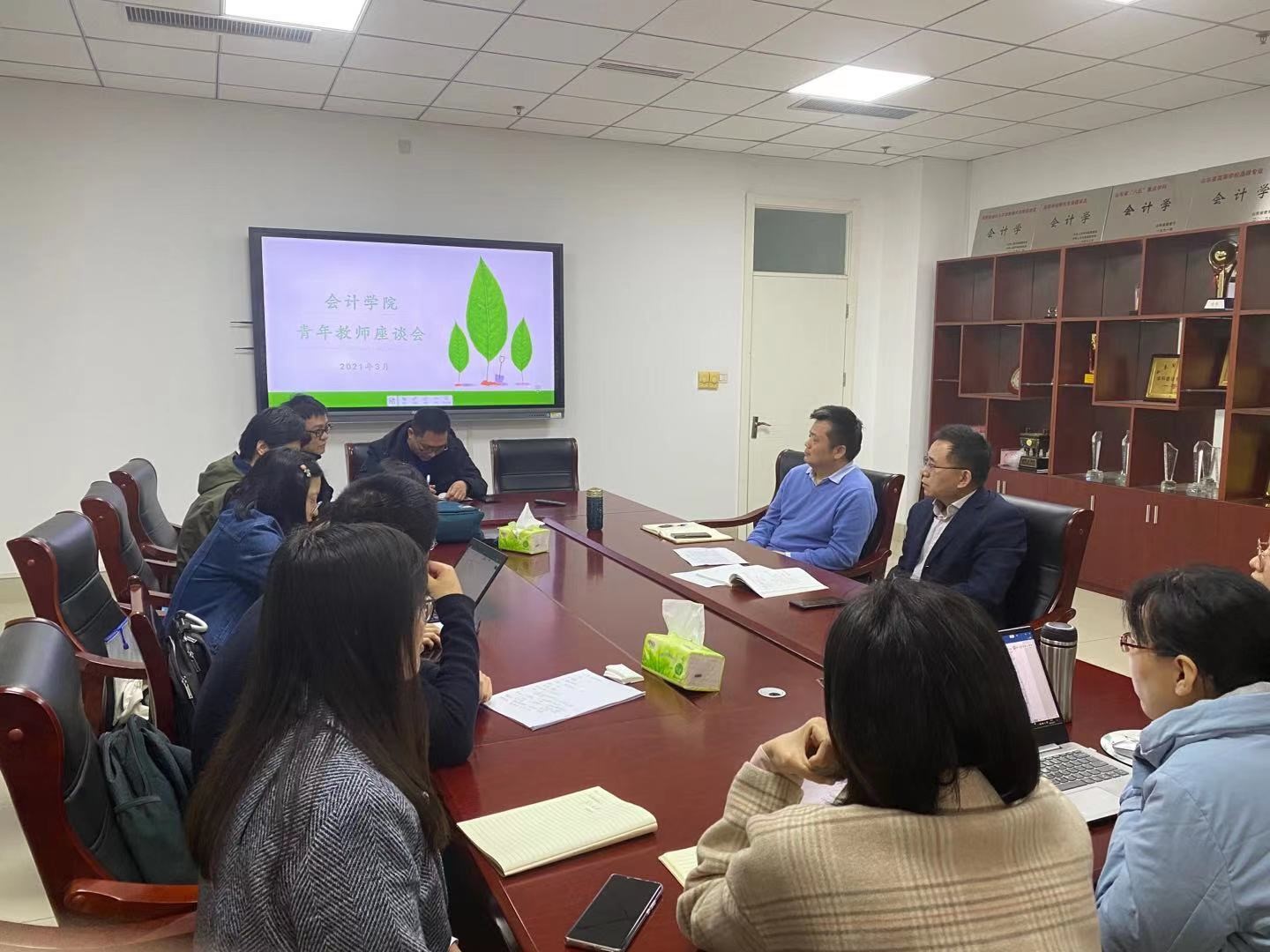 2021年3月11日,免费黄色网站 在逸夫楼举办青年教师座谈会,学院党委书记邵文涛,副院长、Mpacc中心主任朱德胜出席会议。