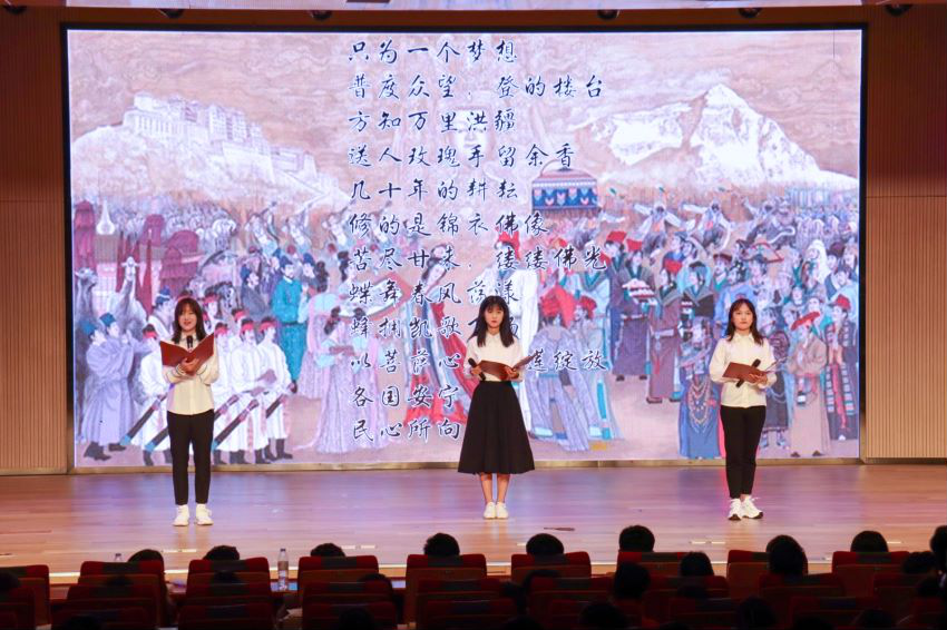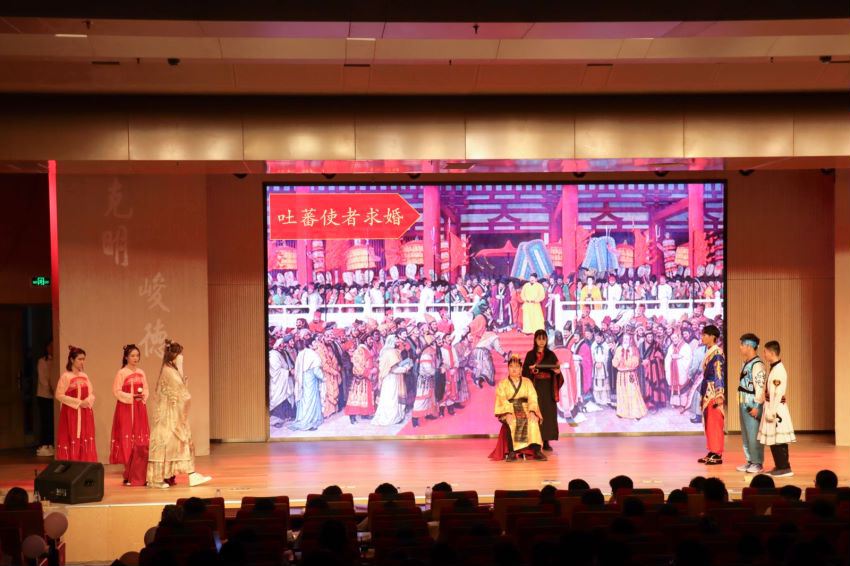 第二篇章“珠辉玉映”。墙后,是繁华的长安,是故乡;墙前,是苦寒的西藏,是远方。去,还是留?话剧《文成公主进藏》重现了载入史册的神圣的一天,唐朝公主的手握住了吐蕃赞普的手,汉藏人民的手也紧紧相握,这是民族团结和民族共同发展进程中的里程碑。一弦一柱,是对经典的吟唱,一曲一章,是对民族的颂扬,在充满古韵的音乐声中,一曲《古韵今风》领我们走进国乐飘香的盛景。