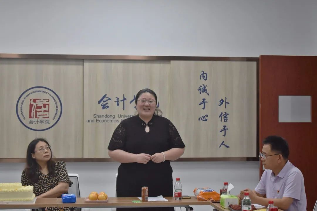 两位退休教师满怀真情发言,他们表示将时刻不忘入党誓言,坚决拥护党的领导,为党的事业奉献终身,同时还深情回顾了在山财大会院工作期间的美好时光,表达了对学院举办此次退休仪式的感谢,表达了他们对教育事业的热爱,以及对学校、同事们的感激、眷恋和不舍之情。他们为学校快速发展和取得的辉煌成就感到骄傲、自豪,并表示在乐享退休生活的同时,将一如既往地关注学校发展,继续为学校发展发挥余热。