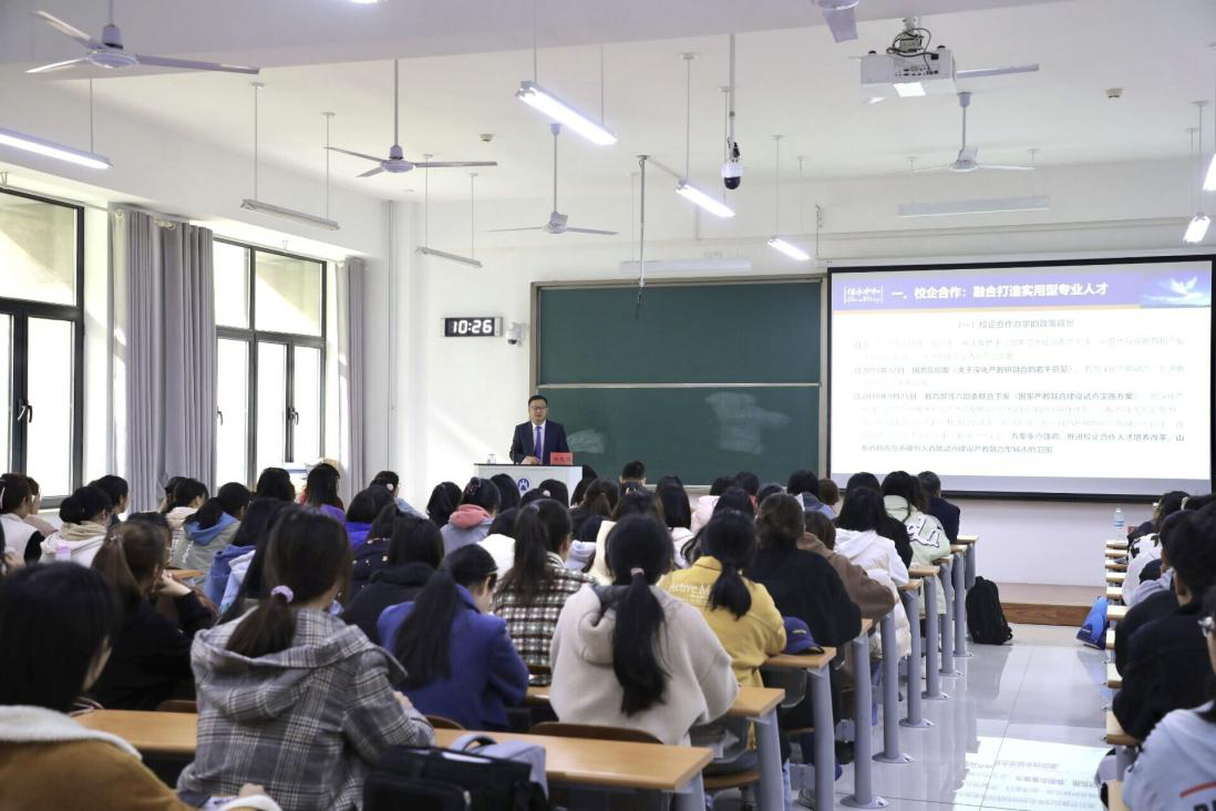 郝先经首先感谢学校和学院给予信永中和会计事务所济南分部长期合作的机会,对同学们来到山财大免费黄色网站 学习会计学这门专业表示祝贺。他围绕“专业成就未来“主题,分别从”校企合作“、”行业回眸”、“风雨兼程”、“未来寄语”四个方面与同学进行了深入探讨。