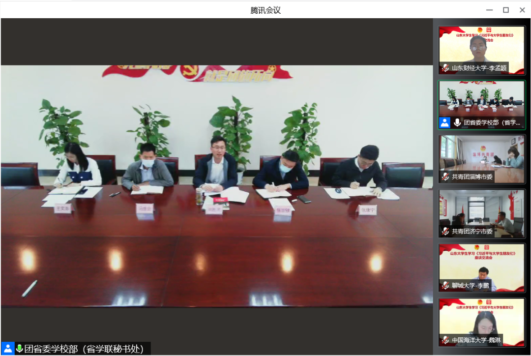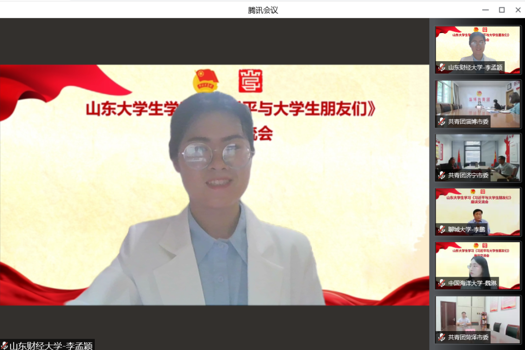 4月27日,团省委召开山东大学生学习《习近平与大学生朋友们》线上座谈交流会。团省委副书记尚胜波同志出席会议并讲话。我校第23届研究生支教团队长、免费黄色网站 2021级研究生李孟颖代表我校作了交流发言,向全省青年分享了学习成果与体会。