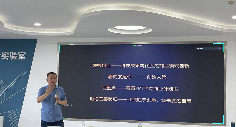 窦大海以自身创业教育经历为开端,用幽默风趣的表达方式,从“创赛的本质目标是育人”这一理念出发,具体介绍了所指导的多项国金项目;然后从创赛国赛、省赛评委的视角,借助往届优秀项目案例,为大家解析了比赛的评分要点、评审规则、赛制变化和常见问题等。