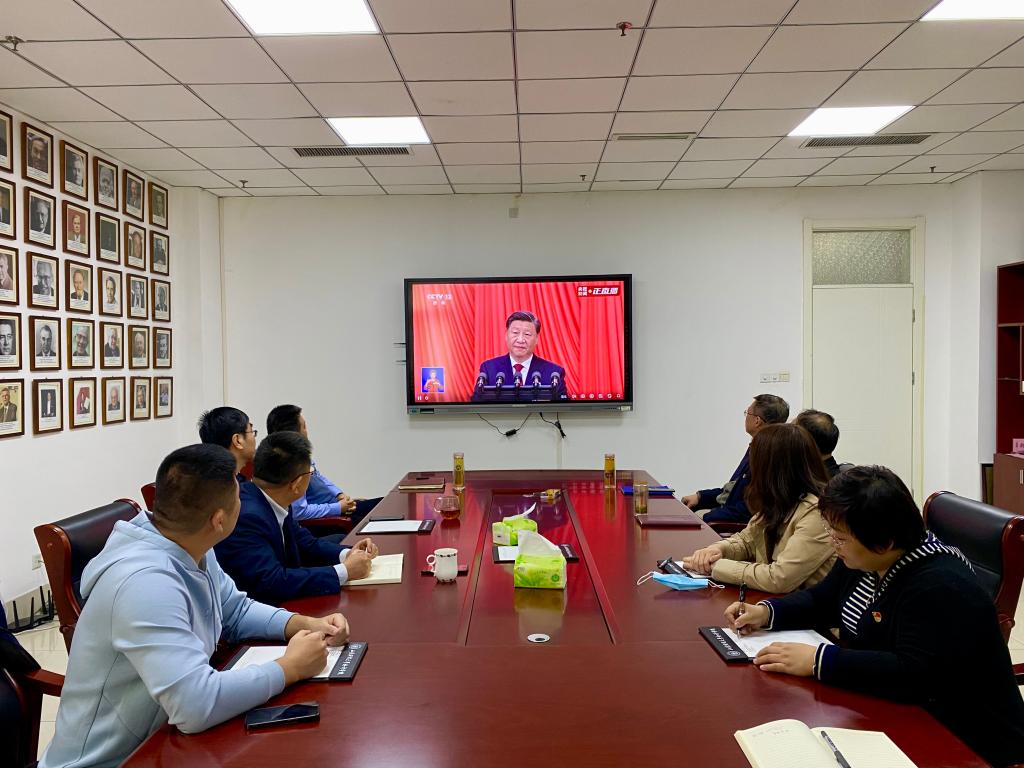 党委书记邵文涛、院长葛永波带领领导班子在燕山校区逸夫楼309会议室集中收听收看开幕会盛况。