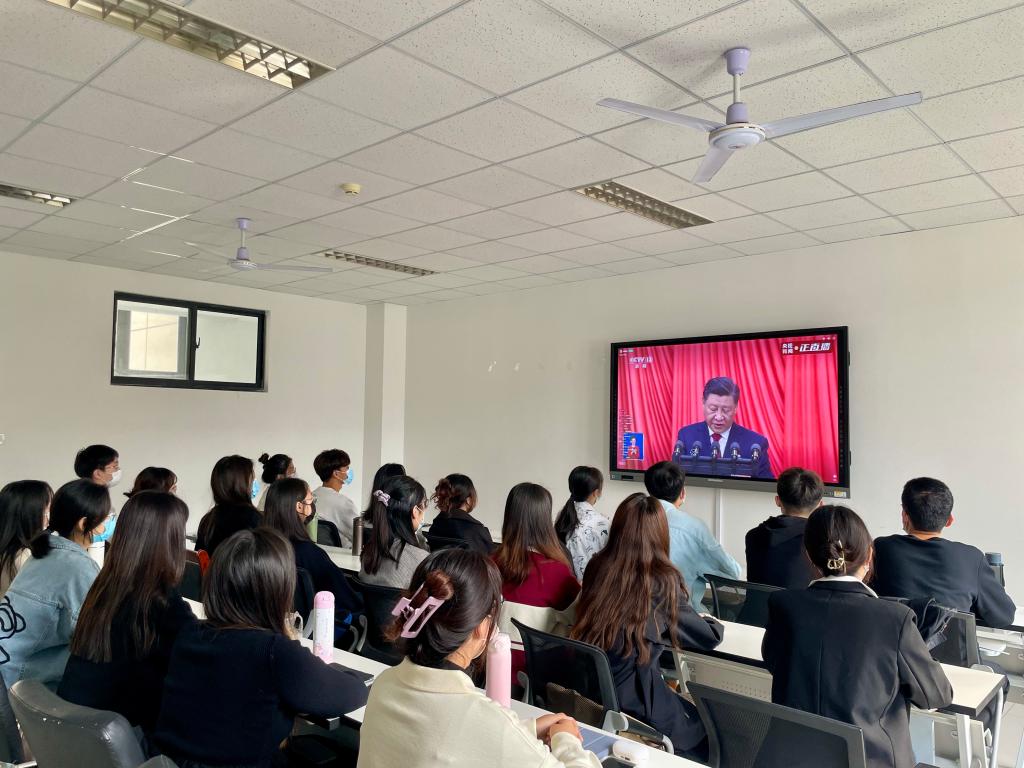 除安排的集中收看外,全院师生通过电视、网络、广播等多种形式在教室、宿舍等地收看收听了二十大开幕式直播盛况。