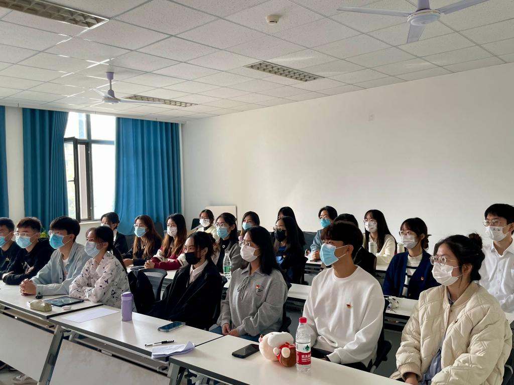 学生第三党支部在圣井校区6232教室集中收听收看开幕会盛况。