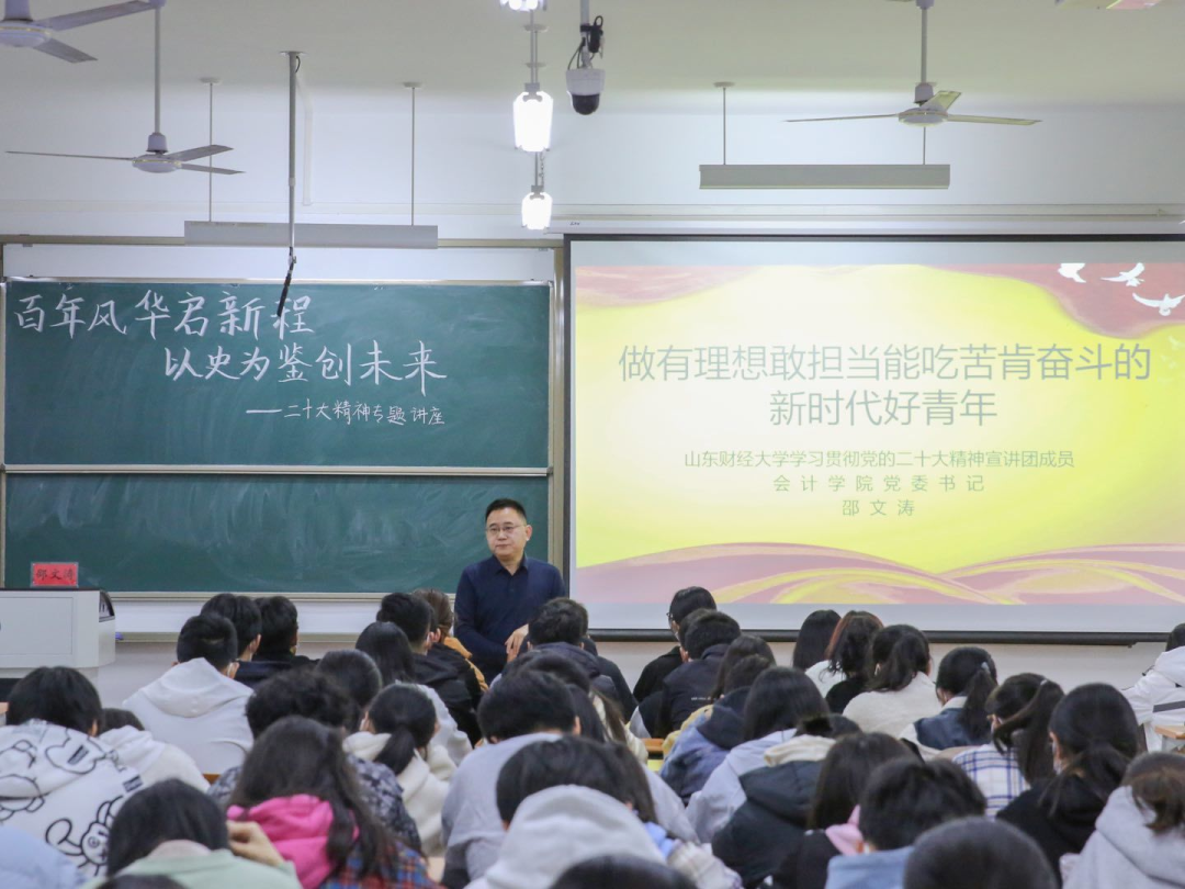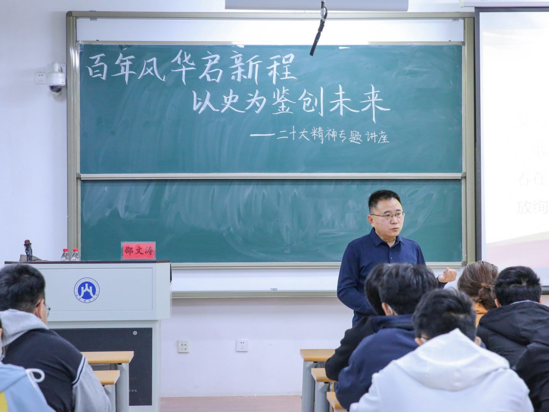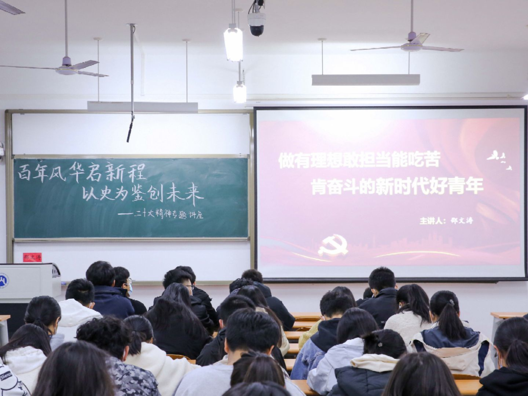 为深入学习宣传贯彻党的二十大精神,把思想统一到党的二十大精神上来,把力量凝聚到党的二十大确定的各项任务上来,引领青年学子坚定不移听党话、跟党走,引导学子们把握历史规律、认清世界形势、融入发展大势,塑造青年学生怀抱梦想又脚踏实地,敢想敢为又善作善成,努力成为堪当民族复兴重任的时代新人,11月15日19:00,免费黄色网站 党委书记邵文涛在圣井校区6218教室为学生们开展“百年风华启新程,以史为鉴创未来”二十大精神专题讲座。