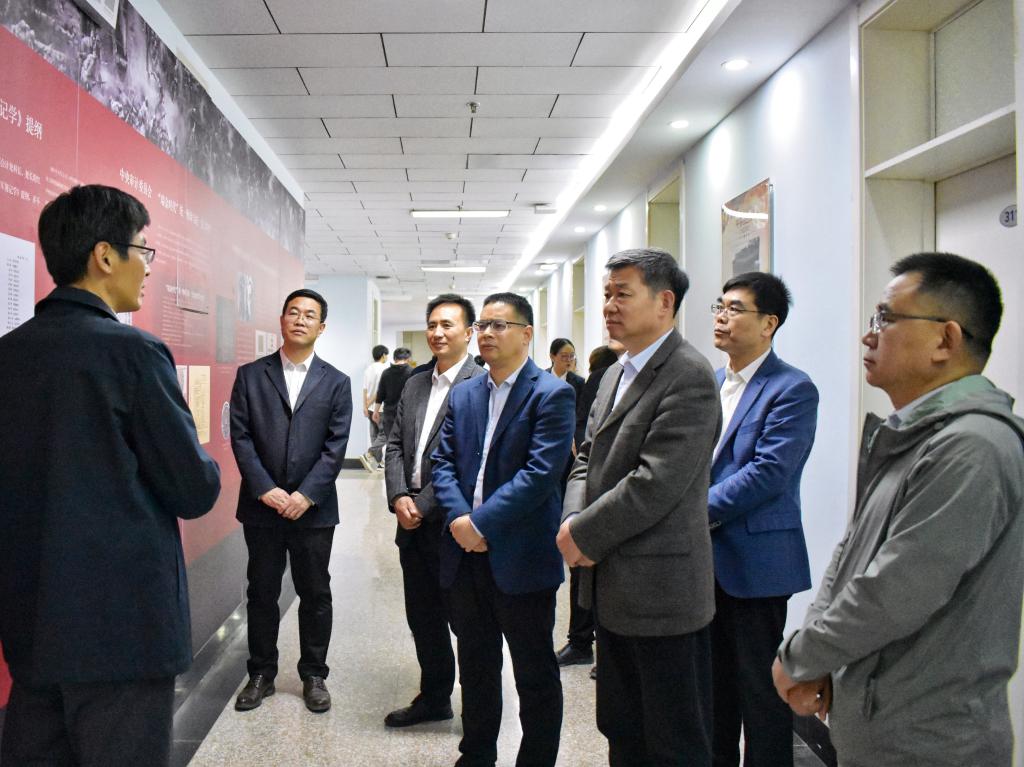 随后,路学堂一行来到学院课程思政实践教育基地,参观“红色会计”主题展览。副院长吴大新结合主题展览的六个篇章,介绍了在党的领导下革命根据地和解放区的红色会计文化从无到有的历程。