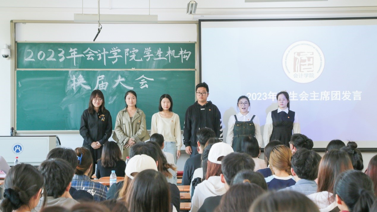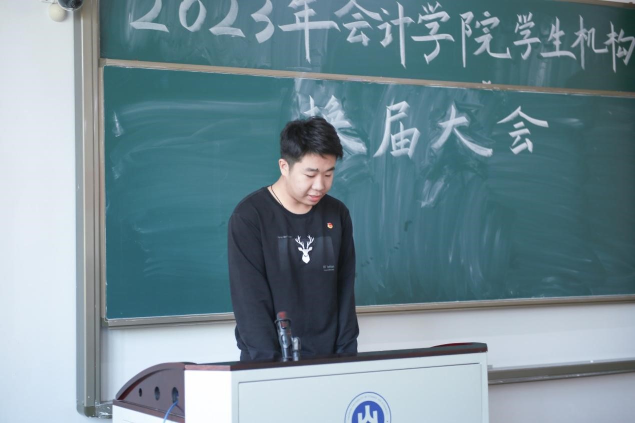 随后,2022年学生会主席高东铭发言,充分肯定和总结了各学生机构2023年的工作成果,各机构分工有序、团结协作,在各方面工作中都取得了新的进展,同时高东铭也表示,期待新一届学生机构能够切实以身作则,严格要求自己,积极热情的展开学生工作。随后,2023年学生会主席团共同上台发言,表达了在学生工作中改革创新、开拓进取,真正为同学做好服务的决心,展望了各学生机构的后续工作任务。
