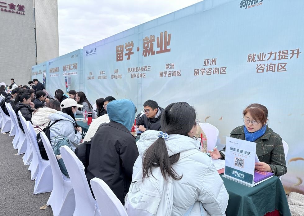 本次升学展在圣井校区第二餐厅广场、燕山校区逸夫楼前广场分别设立了公益咨询展区,学生可以面对面与有经验丰富的指导老师现场进行交流咨询,更好地帮助学生合理规划留学深造与职业发展。展区为满足学生的不同需求分为留学就业规划区、第二外语咨询区、测评及就业规划信息区和福利发放区等多个展区,供学生针对自身情况进行选择。活动现场学生热情参与,收获满满。