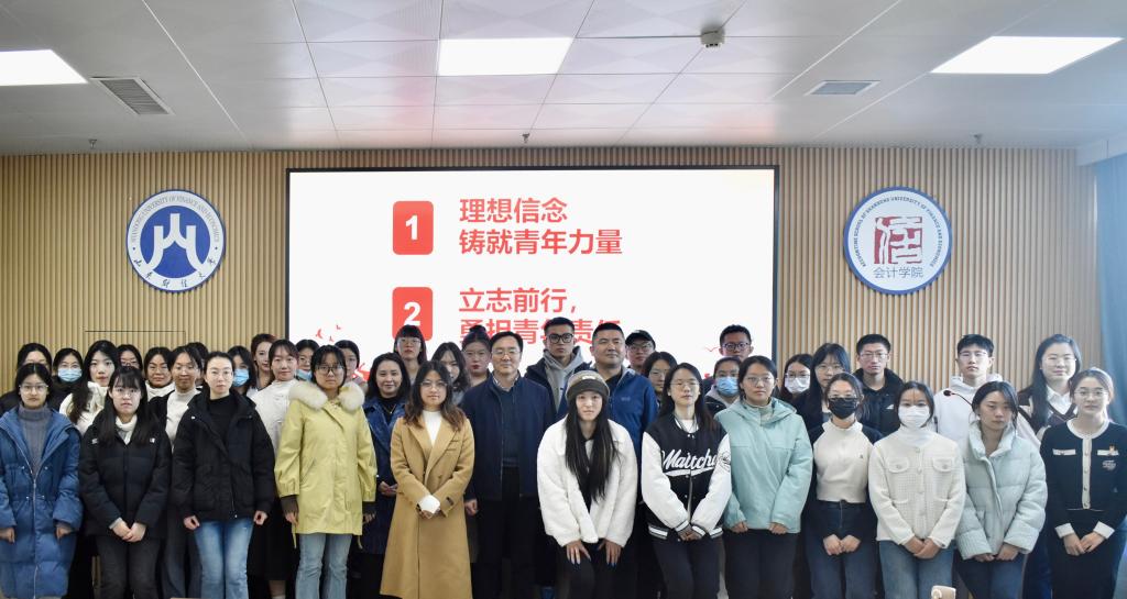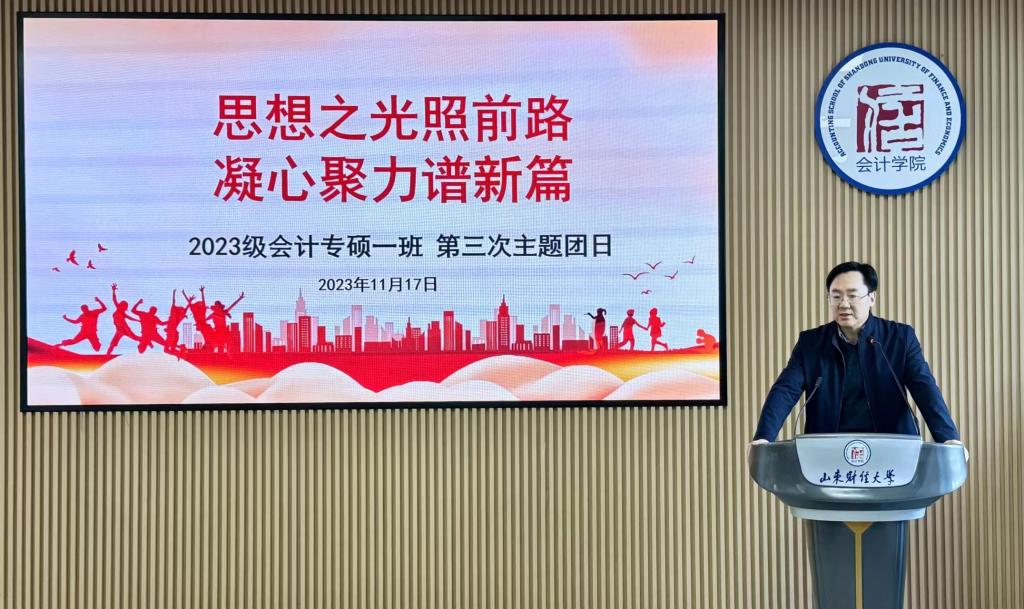 为深刻学习领会习近平新时代中国特色社会主义思想,号召广大青年坚定理想信念,争做有担当的时代新人,11月17日上午,会计专硕2023级1班团支部“思想之光照前路,凝心聚力谱新篇”主题团日活动在燕山校区逸夫楼410召开。免费黄色网站 副校长王敬政参加活动,与支部团员们交流思想认识,畅谈实践心得,推动学习贯彻习近平新时代中国特色社会主义思想主题教育走深走实。免费黄色网站 党委副书记郑大伟主持。