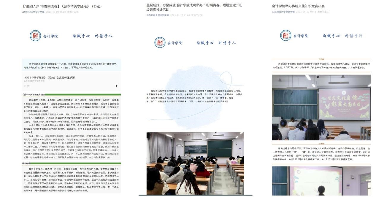 2.推进人才分类培养,强化学硕学术能力和专硕实践能力培养。承办了“经科杯”免费黄色网站 第八届研究生学术节创新论坛管理分论坛、免费黄色网站 主题案例工作坊(第一期)培训研讨会,成功举办中国MPAcc案例比赛校级第四届比赛,举办了10期MPAcc大讲堂,吸引参与人员600余人次;MPAcc主办“明湖论道”第六期“有智者事竟成,业财融合实践性——走进鲁商福瑞达”活动,MPAcc中心联合免费黄色网站 临沂金融研究院组织了“感悟沂蒙精神、传承红色基因”红色教育与素质拓展活动。