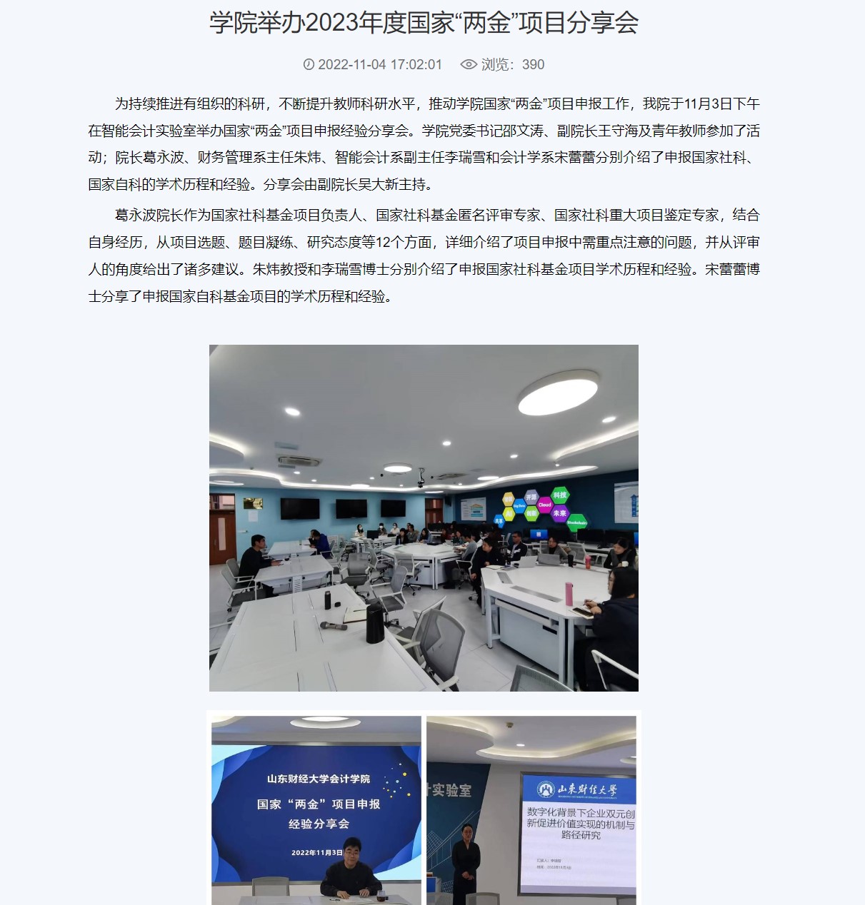 3.深入推进产教科教融合,强化资源共享和协同发展,提升研究生培养质量。山财大-济南金控研究生联合培养基地被评为学校研究生产教融合联合培养示范基地,成为全国智慧财经行业产教融合共同体理事长单位。