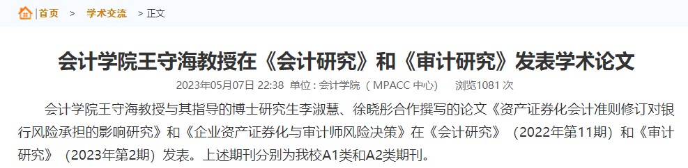 学院教师发表A类及以上高水平论文17篇;其中,A1类8篇,A2类9篇。三部学术专著获学校出版资助。