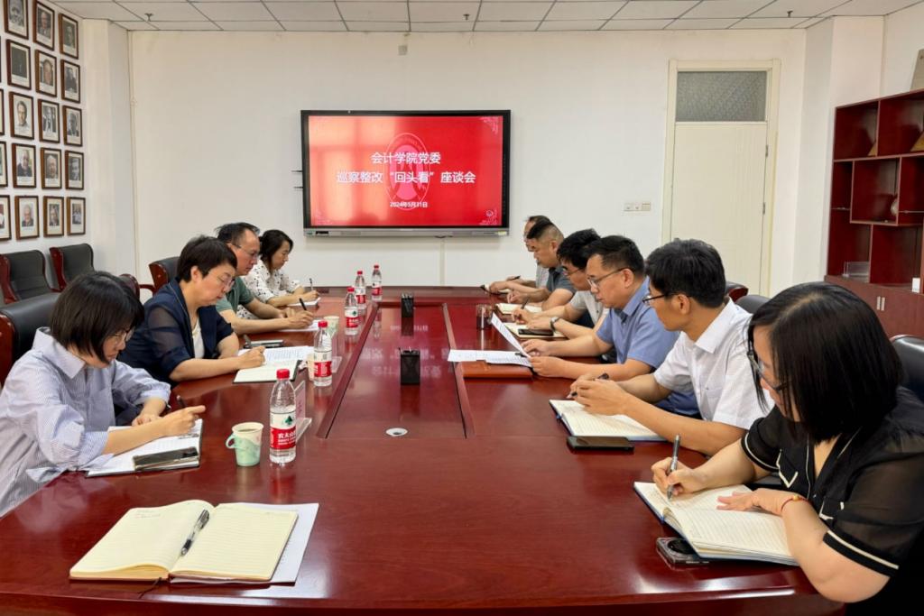 5月31日下午,校党委巡察整改“回头看”工作组在逸夫楼309会议室召开座谈会,反馈巡察整改落实情况。巡察整改“回头看”工作组成员、学院领导班子成员参加座谈会。会议由学院党委书记邵文涛主持。