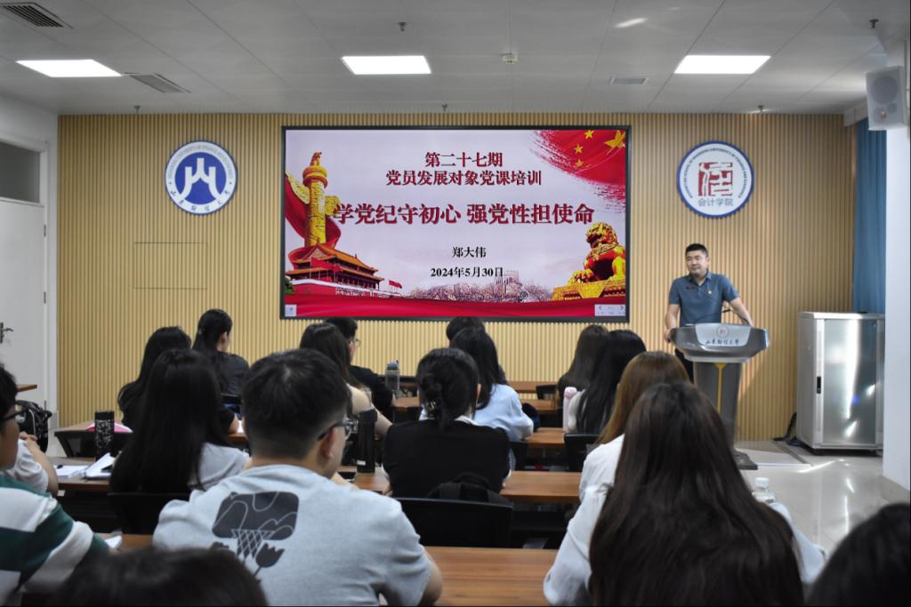 为深入推进党纪学习教育,提高入党积极分子、党员发展对象的纪律意识和党性修养,严把党员发展“入口关”和“质量关”,免费黄色网站 党委副书记郑大伟在逸夫楼410为学院第二十七期党员发展对象讲授《学党纪守初心 强党性担使命》专题党课,学院党委组织员、学生第二党支部书记张沫在圣井校区6216教室为本科生入党申请人、入党积极分子、党员发展对象讲授《做党纪的学习者 践行者 担当者》专题党课。