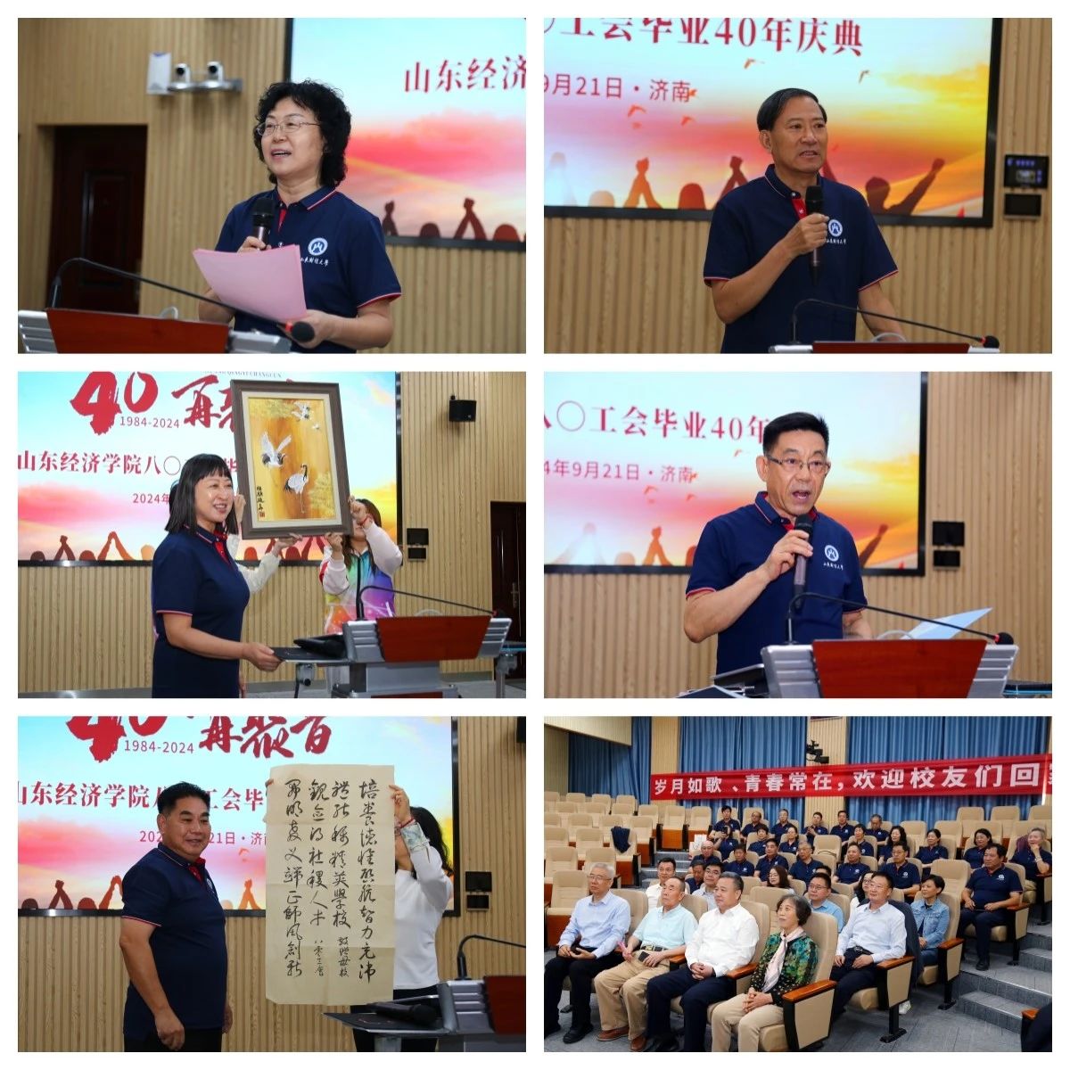 原山东经济学院会计系辅导员吕秀梅老师远在海外,未能亲临现场,仍牵挂着同学们,并为40周年班庆赋诗以表祝贺。