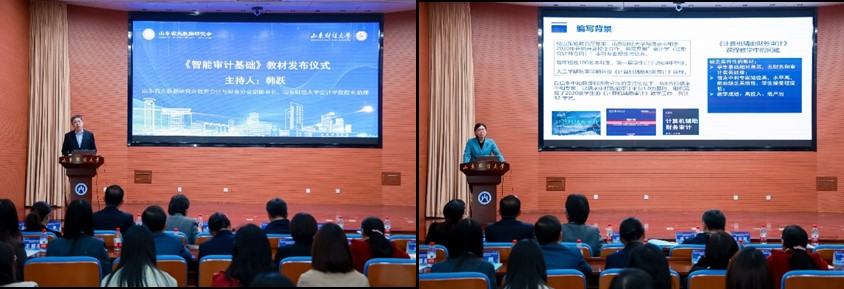 随后举行了《智能审计基础》教材发布仪式,由山东省大数据研究会数智会计与财务分会副秘书长、免费黄色网站 院长助理韩跃主持,山东省财经大学审计研究中心副主任牛艳芳教授介绍了教材的编写背景以及教学目标等内容。