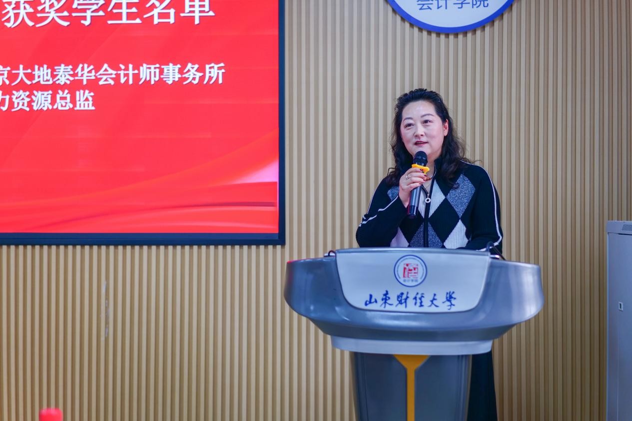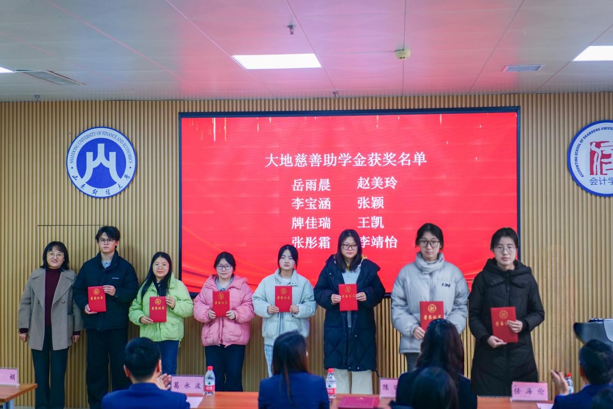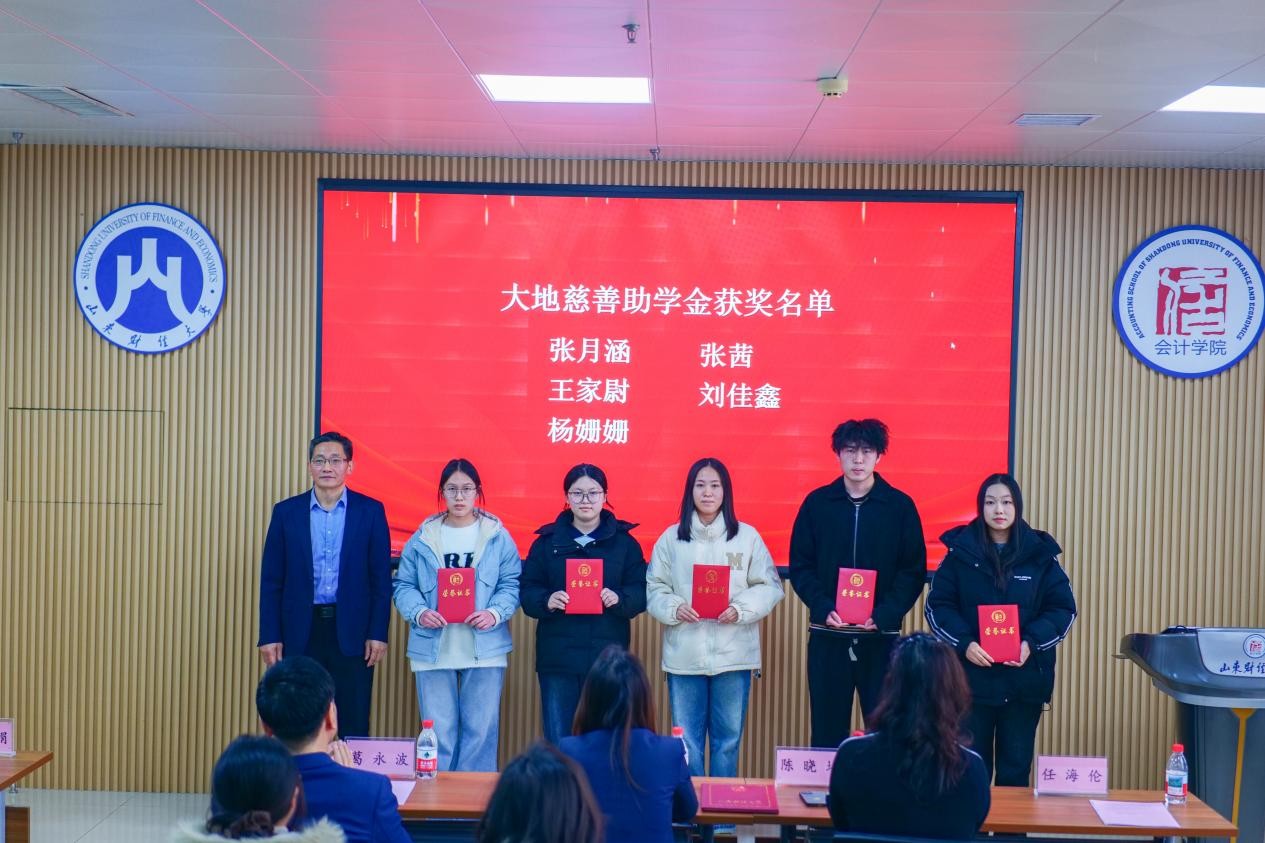 2025年12月19日,山东大地慈善奖助学金颁奖仪式在免费黄色网站 燕山校区隆重举行。北京大地泰华会计师事务所(特殊普通合伙)轮值首席合伙人李凤玉、人力资源总监陈晓培、免费黄色网站 党委书记任海伦、院长葛永波、学生工作部副部长刘娟出席仪式。仪式由免费黄色网站 党委副书记张贞梅主持。
