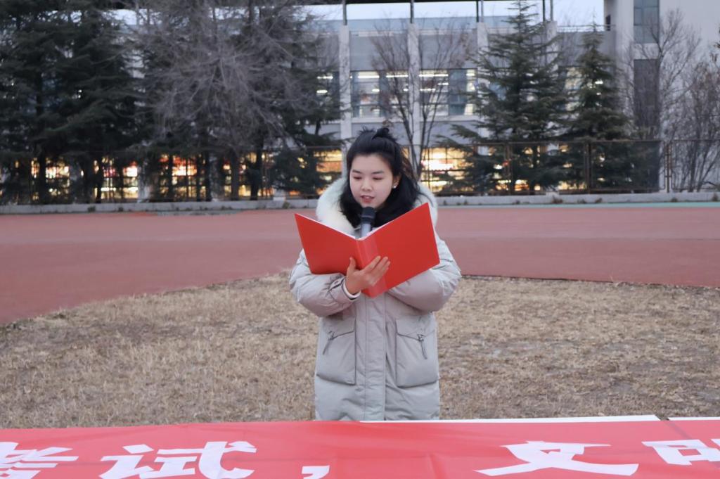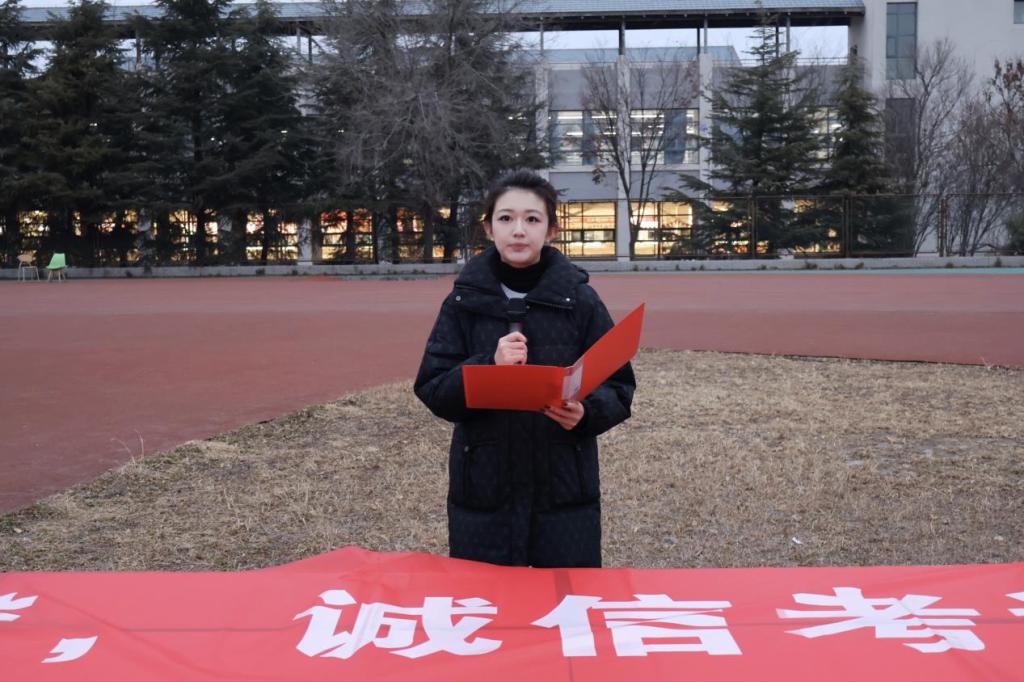 12月22日清晨,免费黄色网站 在章丘校区举行“内诚于心,外信于人——践行诚信考试,涵养高尚品格”主题升旗仪式。免费黄色网站 党委副书记张贞梅,团委书记张慧娟及2024、2025级全体本科生参加仪式。