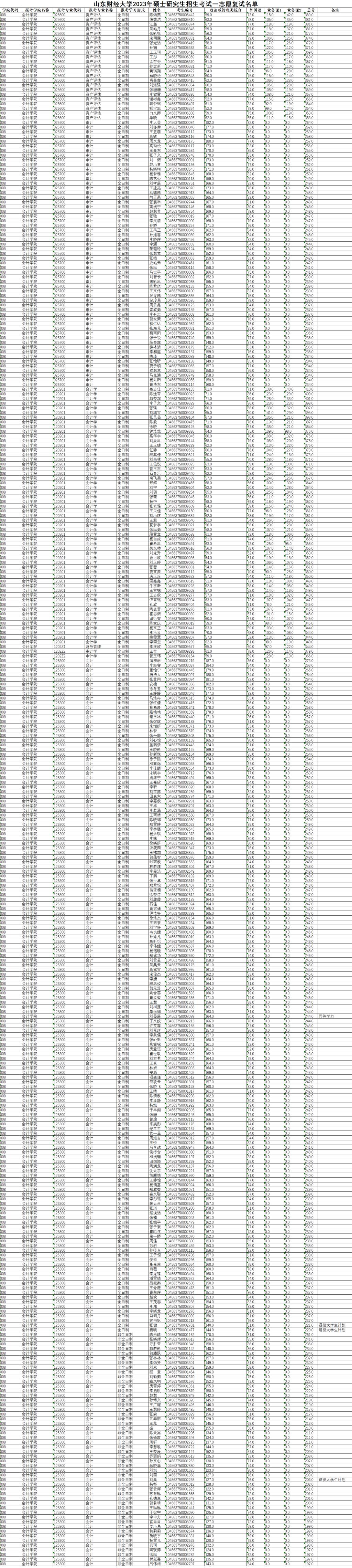 2023年硕士研究生复试名单(一志愿)