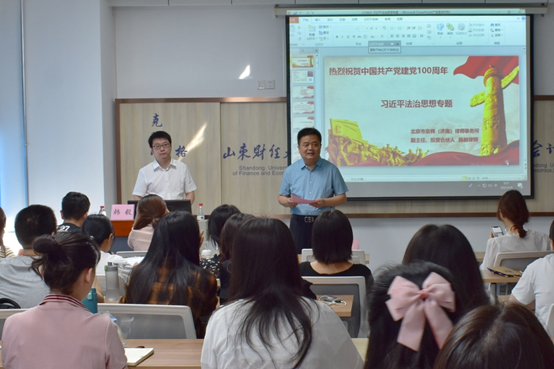 6月6日上午,北京市京师(济南)律师事务所副主任、投资合伙人韩毅律师应免费黄色网站 邀请,在燕山校区逸夫楼Y305做了题为“习近平法治思想”的专题讲座。免费黄色网站 MPAcc中心主任、免费黄色网站 副院长朱德胜教授主持了本次讲座,免费黄色网站 2020级部分非全日制研究生聆听了讲座。
