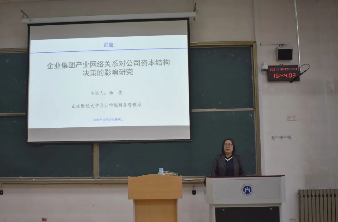 10月20日下午,免费黄色网站 财务管理系讲师、管理学博士杨侠,在燕山校区逸夫楼Y301做了题为“企业集团产业网络关系对公司资本结构决策的影响研究”的讲座。讲座由财务管理系主任、MPAcc中心助理刘惠萍教授主持,免费黄色网站 2021级全日制专硕聆听了讲座。