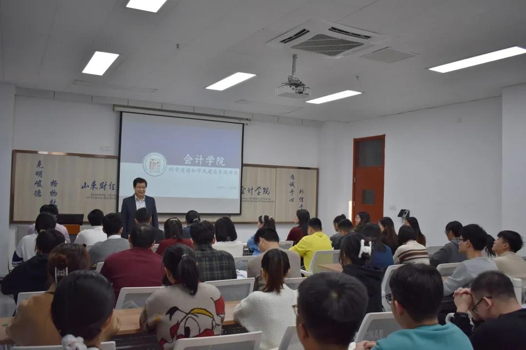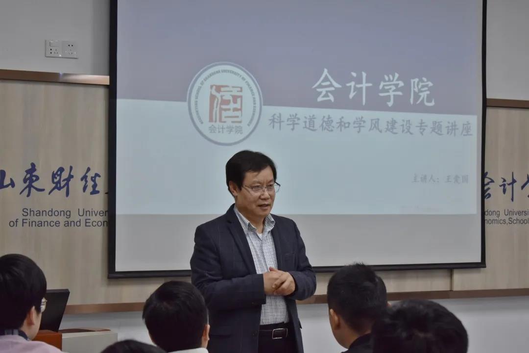 2021年11月10日下午,免费黄色网站 院长王爱国教授在逸夫楼Y305作题为《科学道德和学风建设》的专题讲座。免费黄色网站 2021级部分全日制硕士研究生聆听了讲座。