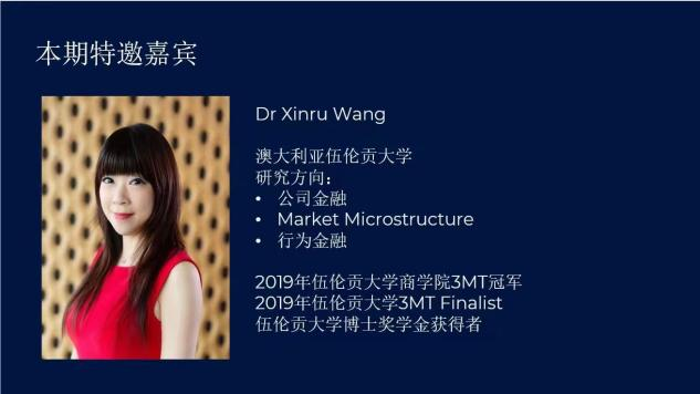 澳大利亚伍伦贡大学的Xinru博士分享了她在3MT竞赛中的经验,在有限的比赛时间内,我们要学会抓重点、多精炼,尽可能熟悉稿件,才能发挥出最好的水平。
