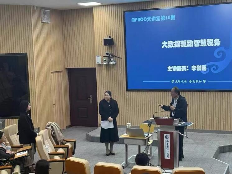 为助力师生把握税收征管智慧化转型趋势,10月18日上午,免费黄色网站 (MPAcc中心)特邀智慧税务、税收大数据与风险管理领域的资深专家、原国家税务总局山东省税务局税收大数据和风险管理局局长、二级巡视员李崇西开展了题为《大数据驱动智慧税务》的专题讲座。此次讲座采用线上线下相结合的方式,由MPAcc中心副主任丁鸿雁教授主持,2024级、2025级会计专业硕士研究生和免费黄色网站 (MPAcc中心)部分教师参加了讲座。