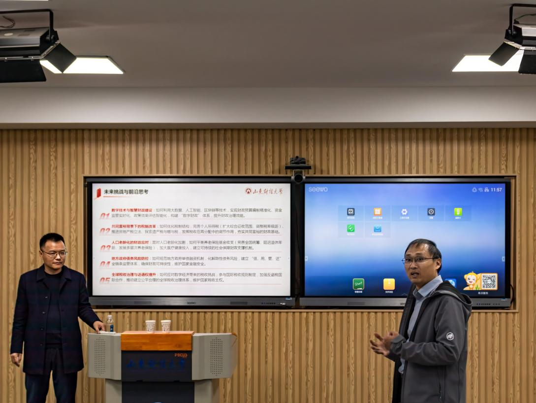 最后,马恩涛就数字技术与智慧财政、人口老龄化下的财政可持续等前沿议题与现场师生展开深入交流。马院长指出,面对数字化浪潮的全面渗透,现代财政体系正经历从制度驱动向数据驱动的重要转型。他建议青年学子主动拥抱变革,在夯实财政学理论根基的同时,构建数字认知框架,将智能工具转化为专业洞察力,通过科技赋能实现职业发展的战略性突破。