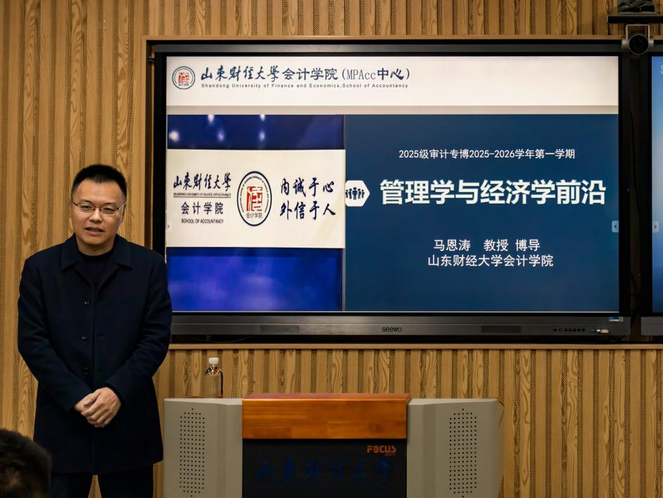 为帮助学生构建完整的财政理论框架,引导学生关注数字财政等前沿议题,培养服务国家治理现代化的使命担当。11月9日上午,审计前沿大讲堂第一期在燕山校区逸夫楼104成功举办。免费黄色网站 (MPAcc中心)特邀研究生院院长马恩涛教授开展了题为《大国财政转型之路历史逻辑创新与时代使命》的专题讲座。2024级、2025级审计专业博士研究生、审计硕士研究生及部分教师代表参加讲座。讲座由免费黄色网站 副院长刘惠萍及审计系主任武恒光教授主持。