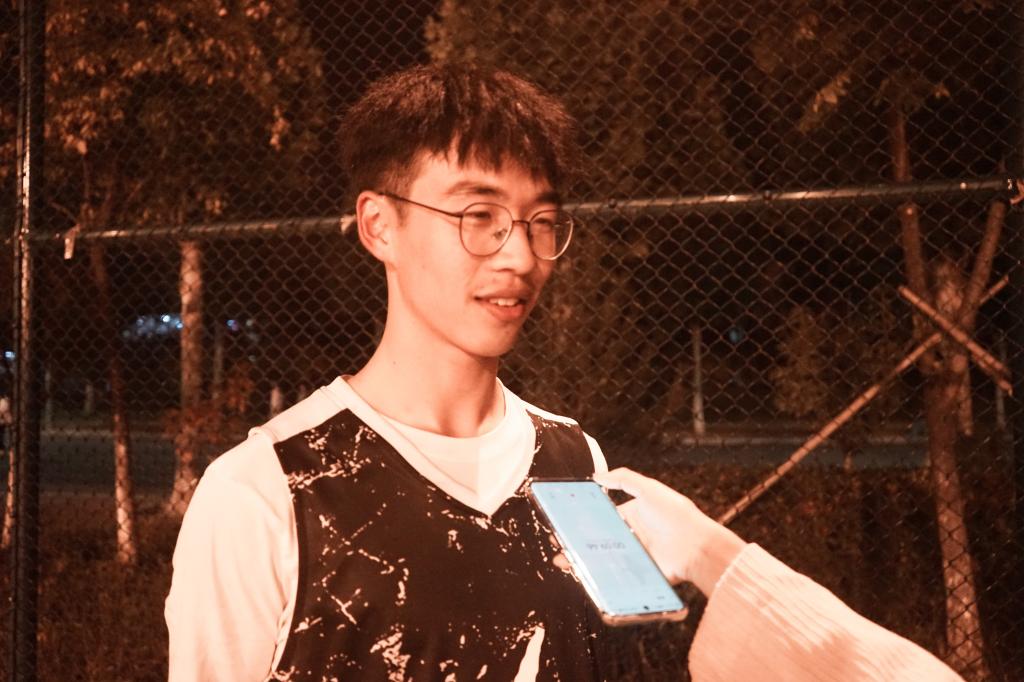 在赛前球员活动热身期间,我们采访到智能会计班的杨梓瀚同学,他表示对这场比赛充满了期待,“无论哪一只队伍胜出,他们都是货真价实的冠亚军,是通过自己的努力与汗水一步步拼搏至此,我希望他们在今晚的比赛中都能发挥出自己最好的水平!”