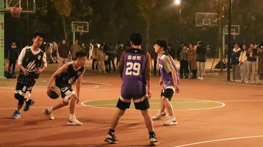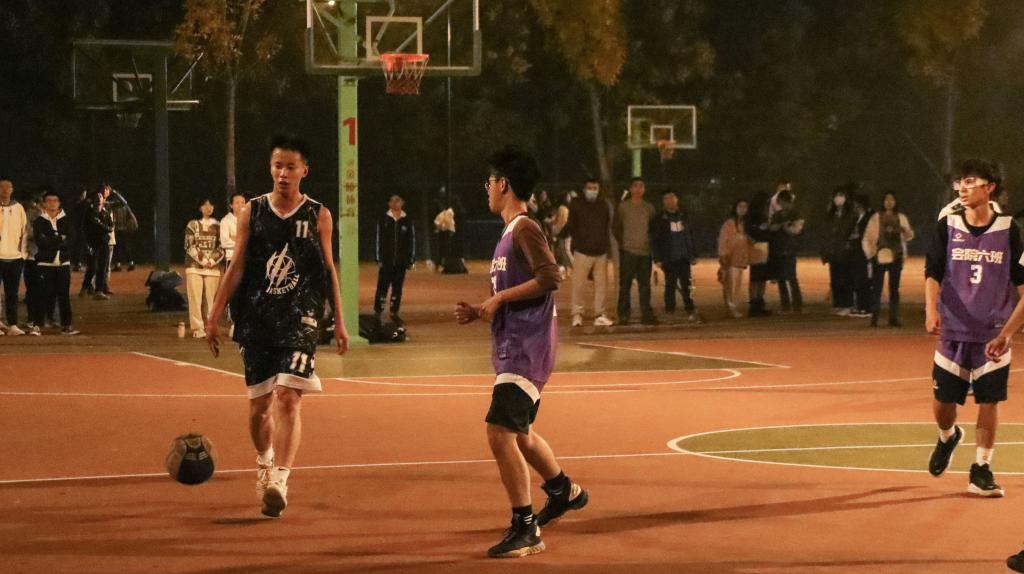 秋雨初歇,声声呐喊打破雨后的萧瑟;夜幕降临,层层身影活跃于篮球场上。