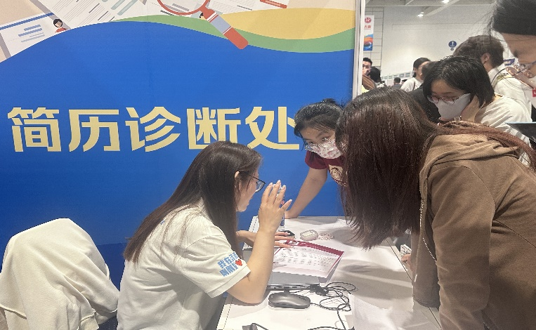 同时,本次招聘会专门设置了简历诊断处。学生积极递交个人简历,简历指导老师在现场提供专业的简历制作建议,帮助大家了解如何有效地展示自己的教育背景、实习经历、技能和成就,从而提升自己的求职竞争力。这一专区的设立也为在校大学生普及了求职知识,使得更多来自不同背景的同学都能获得平等的求职机会,减少了因信息不对称而导致的求职不平等现象。在得到专业的简历修改建议后,同学们表示会更好地展示自己的能力,更有信心地面对求职市场。