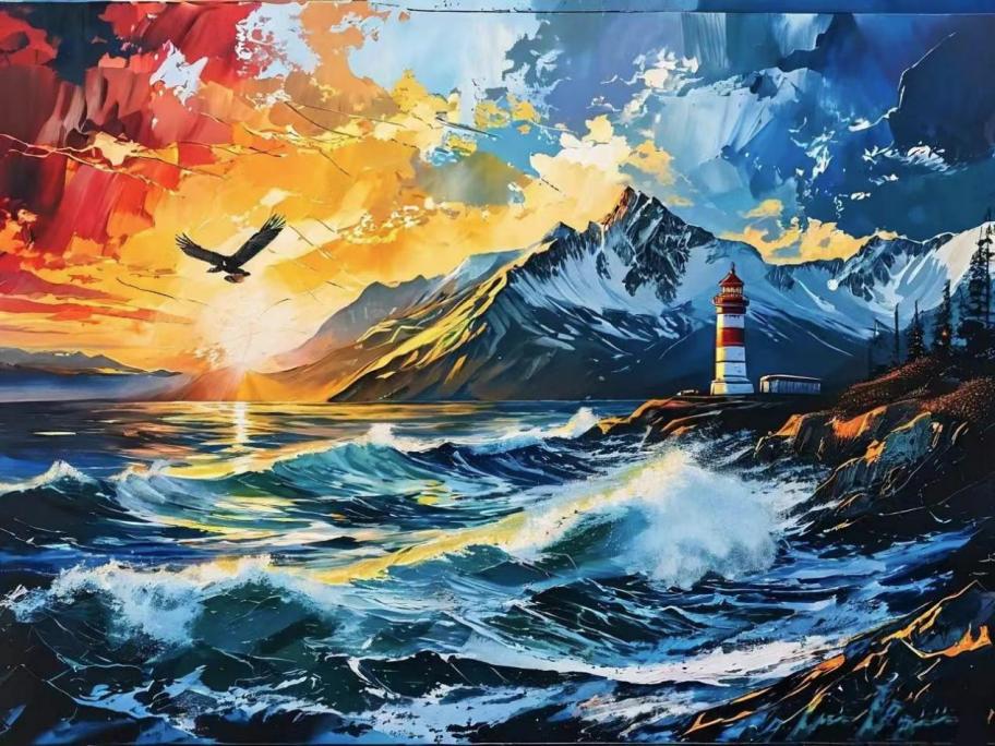 从视觉上来看,这幅作品画面构图精巧,色彩搭配和谐,既有现代感又不失传统韵味,同时也展现了生动性和感染力。
