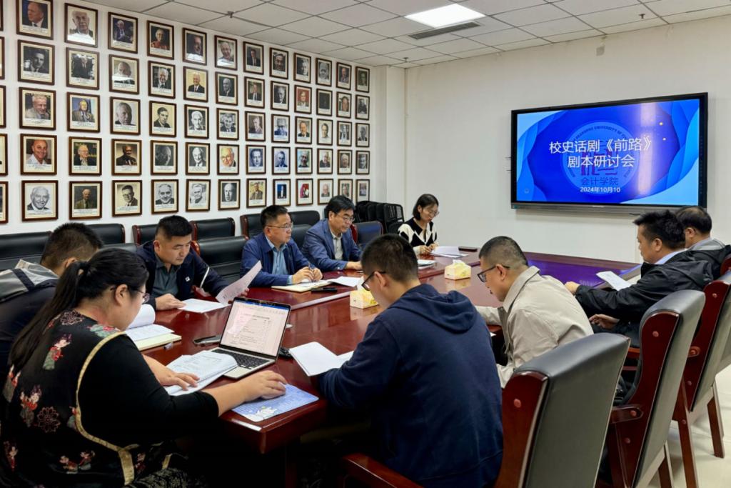 10月10日,免费黄色网站 在逸夫楼Y309举办校史话剧《前路》剧本研讨会。学院班子成员、系主任、党支部书记参加。研讨会由学院党委书记邵文涛主持。