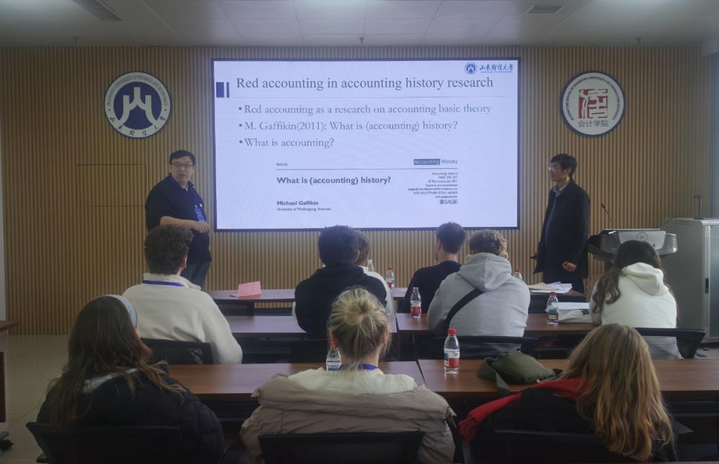 吴大新为访学团展示了部分红色会计史料,讲解了红色会计的研究思路和研究意义,希望澳洲学子通过会计史研究,加深对中国历史尤其是中国革命史的了解,从而深入认识当代中国。澳方学生对红色会计研究的史料收藏和学术理路等表现出浓厚兴趣。