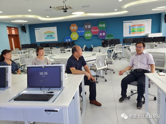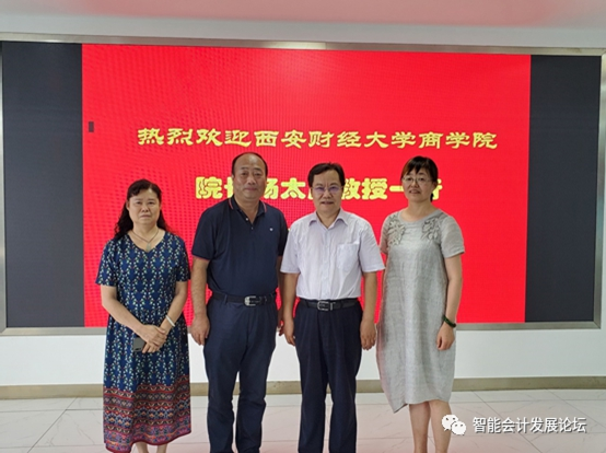 2020年8月12日下午,西安财经大学商学院院长杨太康教授、商学院分管教学副院长陈淑芳教授、商学院会计系主任贡晓军教授访问免费黄色网站 。王爱国院长于智能会计实验室和来访嘉宾展开会谈,智能会计研究中心执行主任滕晓东出席座谈。