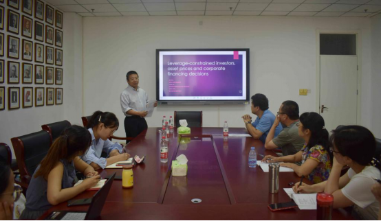 2019年7月16日下午,爱荷华州立大学商学院金融系高磊教授应免费黄色网站 邀请,在燕山校区逸夫楼Y309作题为《Leverage-constrained investors, asset prices and corporate financing decisions》的学术报告。讲座由孙文刚院长主持,免费黄色网站 部分老师以及2018级部分硕士研究生聆听了讲座。高磊教授主要致力于金融市场、资产回报预测、实证公司财务、公司监管、免费黄色网站、文本分析和机器学习等研究,且将于2019年9月份任职于美国证监会。
