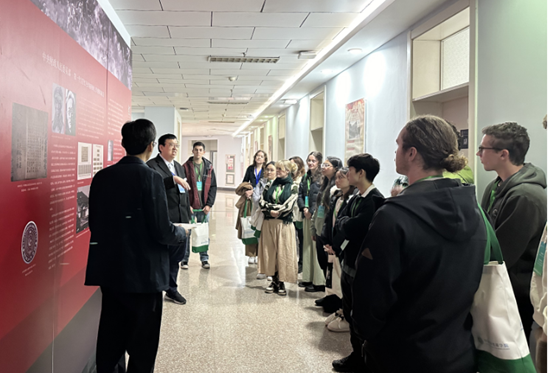 开幕式结束后,访学团访问免费黄色网站 ,参观了“红色会计”主题展。伍伦贡大学商法学院高级讲师、研究生教学主管、访学团领队黄泰然博士向访学团的同学们介绍了商法学院与免费黄色网站 多年来的合作历程。