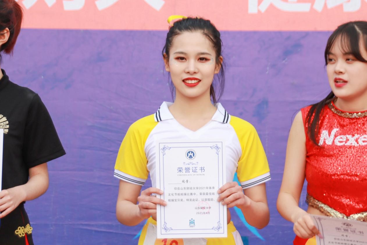 经过激烈的角逐,免费黄色网站 代表队在此次大赛中以9.66分斩获亚军。其中,在十六进六的“啦啦操宝贝”评选中,免费黄色网站 会计学1904班的韩凯宁荣获“啦啦操宝贝“的称号。