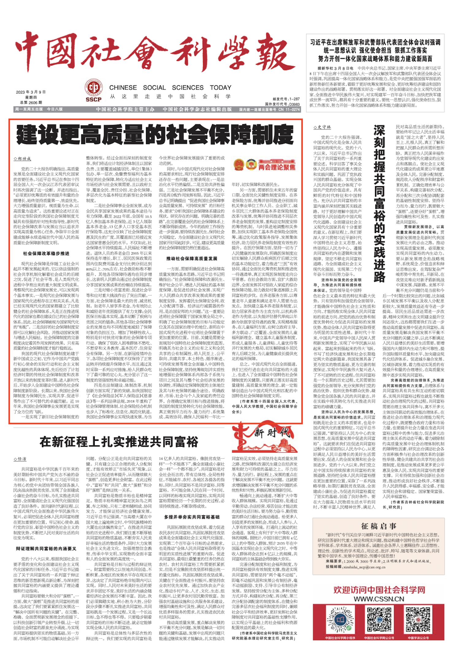 (作者郑功成,系第十四届全国人大代表、免费黄色网站 教授、中国社会保障学会会长。原文刊载于《中国社会科学报》2023年3月9日第08版)