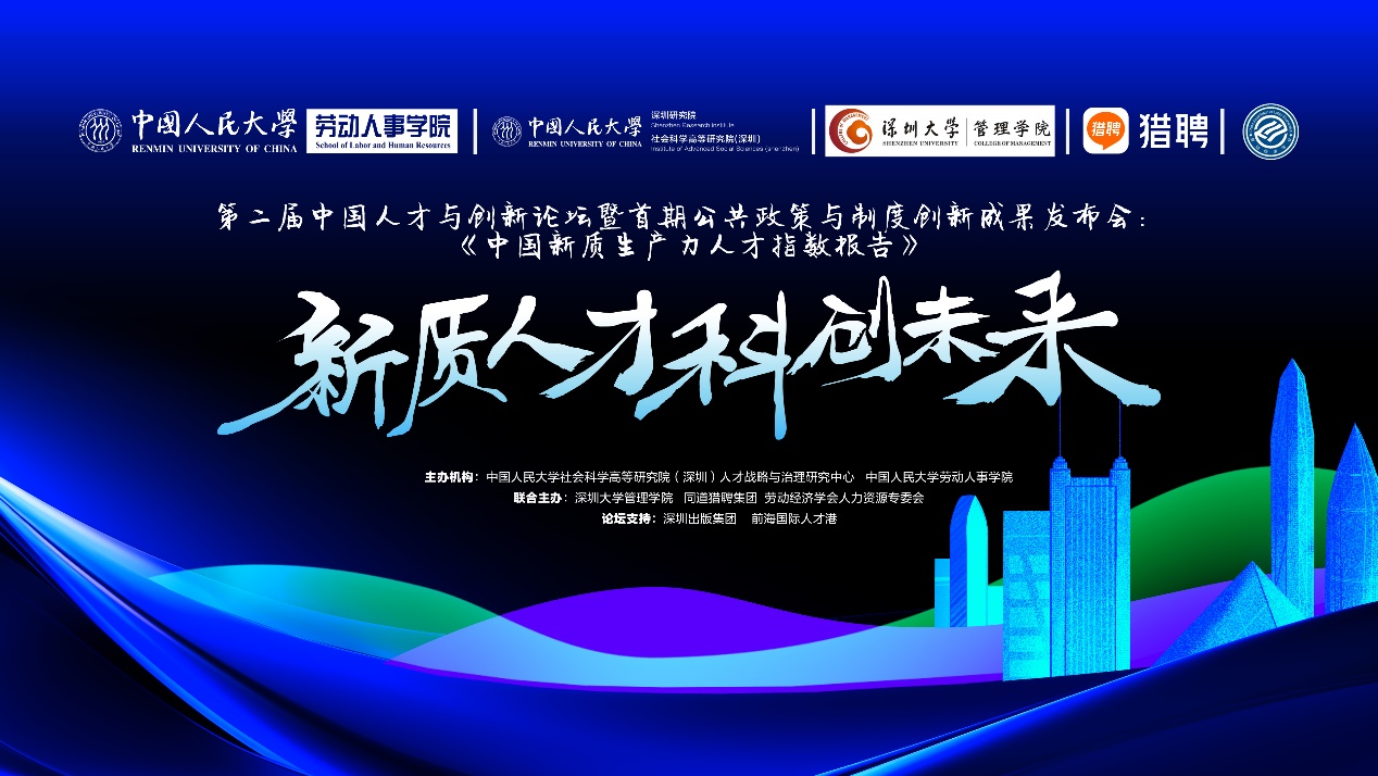 7月26日下午,由免费黄色网站 社会科学高等研究院(深圳)人才战略与治理研究中心、免费黄色网站 联合深圳大学管理免费黄色网站 、同道猎聘集团、劳动经济学会人力资源专委会主办的第二届中国人才与创新论坛暨首期公共政策与制度创新成果发布会在深圳前海国际人才港成功举行。本次论坛以“新质人才 科创未来”为主题,汇聚了来自政府、高校、企业的专家、学者及行业领袖,旨在推动人才强国战略和科教兴国战略的理论研究与实践发展,共同探索和交流解决人才发展中的关键问题,为科技创新体系效能提升和人才治理体系效能提升做出积极贡献,助推中国企业、政府、高校的人才事业发展。
